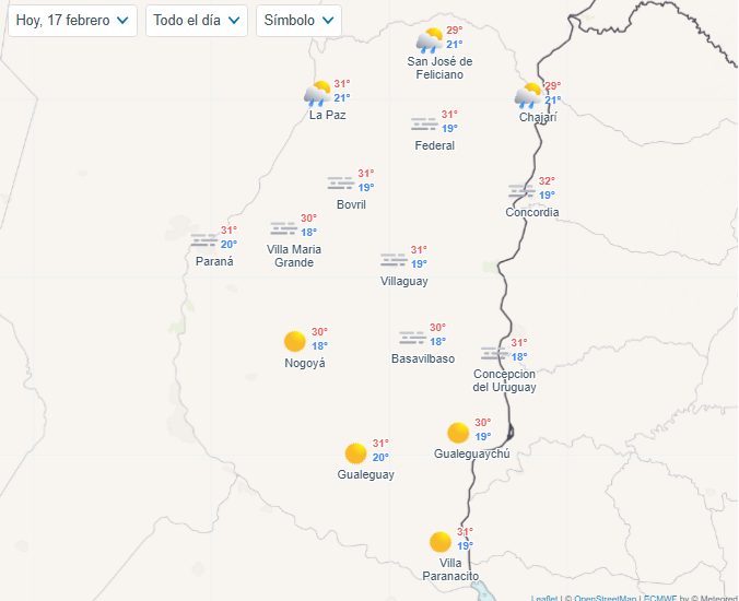 Clima en las principales ciudades entrerrianas, con información del sitio Meteored