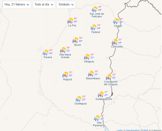 Clima en las principales ciudades entrerrianas
