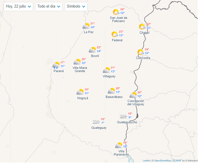 Clima en las principales ciudades de Entre Ríos