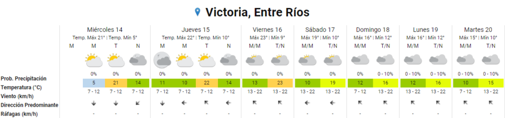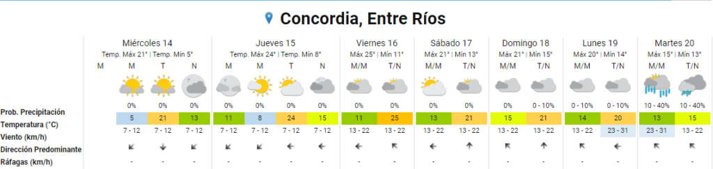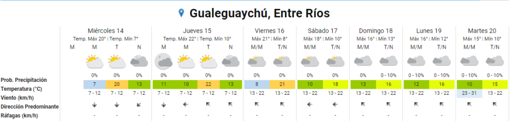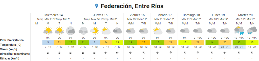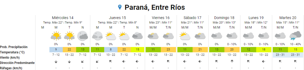En Entre Ríos para esta jornada se pronostica cielo algo nublado. Se esperan temperaturas máximas de 21 grados.
