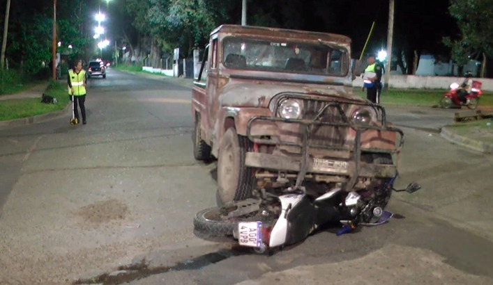 El conductor dijo que trató de frenar con la caja de cambio, pero no lo logró, como se puede apreciar en la foto. La moto terminó debajo del jeep. El personal de la comisaría sexta tomó intervención en el caso y estaba investigando si el conductor del Jeep no protagonizó otro incidente en avenida Ejército.