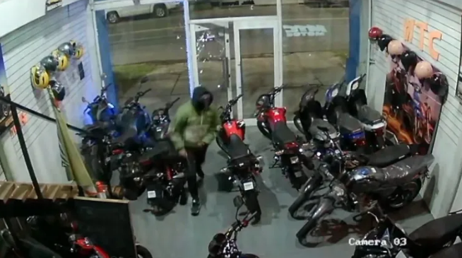 El robo en la concesionaria ocurrió durante la madrugada del viernes, cuando un sujeto encapuchado forzó la puerta de ingreso con una barreta, ingresó al local, tomó varios cascos y dinero de la caja registradora, para darse a la fuga rápidamente.