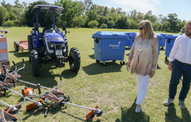 En esta etapa, se incorporaron 1.000 contenedores, 2 tractores, 4 camiones utilitarios -doble cabina, caja playa, marca Mercedes Benz-, más de 100 desmalezadoras y 24 sopladoras. Estas herramientas permiten mejorar la eficiencia del trabajo diario, cuidar los espacios públicos y acompañar el esfuerzo de los equipos municipales para que Paraná esté más limpia y ordenada.