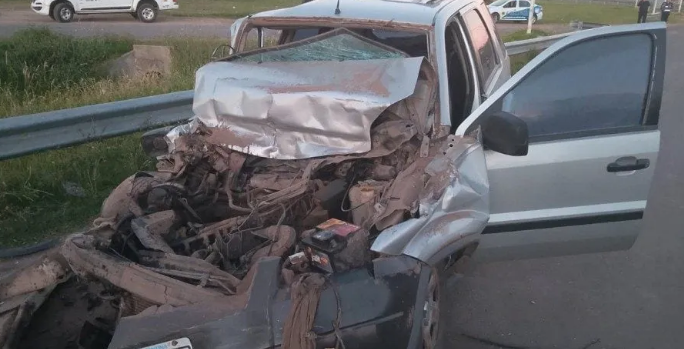 Por causas que son materia de investigación, una camioneta Ford EcoSport impactó de frente contra la parte trasera de un acoplado que permanecía estacionado en la dársena de la ruta.
