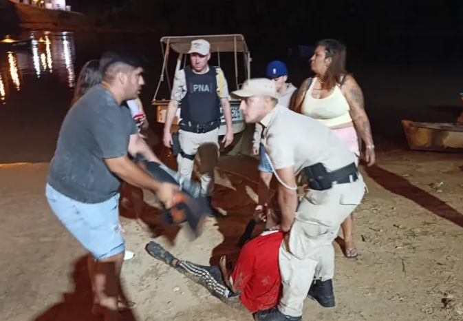 Al llegar al lugar, a la altura del kilómetro 184 del canal secundario del río Uruguay, el personal constató la presencia de una embarcación a remo, sin nombre ni matrícula, en cuyo interior se encontraban dos hombres mayores de edad. Uno de ellos, quien estaba a cargo del bote, se encontraba descompuesto.