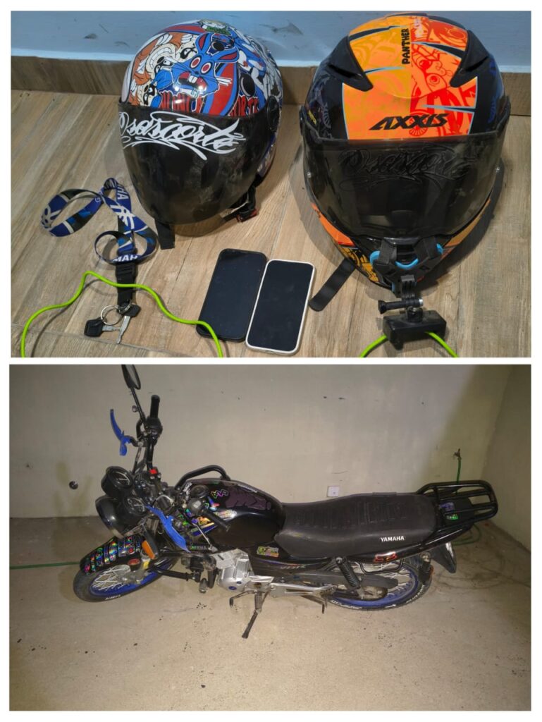 Ante este escenario, móviles policiales iniciaron un seguimiento preventivo que fue registrado mediante material fílmico. Como resultado del operativo, se logró interceptar en un camino vecinal hacia Montoya a una motocicleta marca Yamaha, modelo YBR, de color negro, en la que se desplazaban dos jóvenes de 19 años de edad, ambos oriundos de la localidad de Maciá.