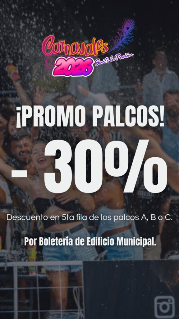 - 30% de descuento en palcos de últimas filas (5ta) del sector A, B ó C.