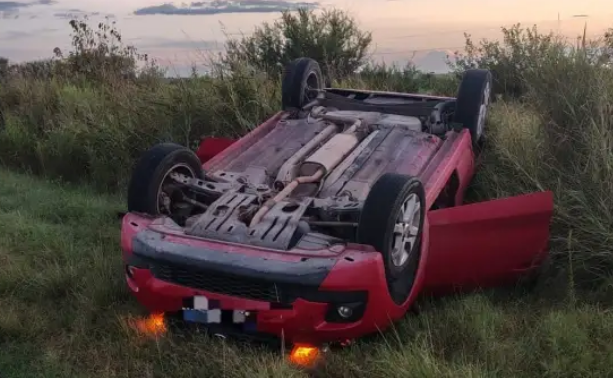 Por causas que se investigan, un automóvil Fiat Mobi que era conducido por un joven de 19 años, despistó, volcó, y quedó con las ruedas hacia arriba. Según señaló el mismo conductor: intento “esquivar un pozo de gran tamaño” y, al retomar el carril, perdió el control del vehículo.