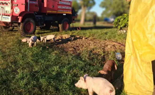 Un importante operativo de emergencia se efectuó en la zona rural al sur de Concepción del Uruguay, debido a un incendio en granjas de cerdos, en la zona de Santa Cándida.