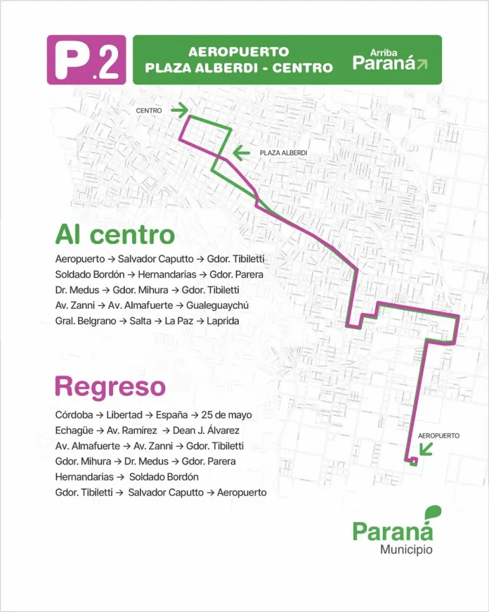 La Municipalidad de Paraná comunicó la implementación de un cambio de recorrido en la Línea P en el sistema de transporte de la ciudad.