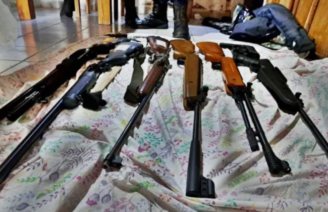 Los efectivos policiales secuestraron un arma de fuego Rossi 16 N, una UZKON TR N, una BERETTA 6,35, una BERSA BP9mm, una NORINCO 1911, una BERSA TUNDER 380 y un Rifle NORINCO JW 15. Además, se secuestraron tres armas neumáticas, tratándose de una nitro piston, una Suig 5,5 y una carabina de quiebre 5,5.