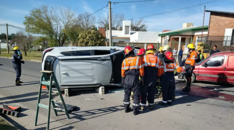 Dos unidades del Cuerpo Activo de Bomberos, personal policial, y del servicio de emergencias, fueron convocadas por el Área de Tránsito Municipal, para auxiliar a un ciudadano que había protagonizado un violento choque y vuelco en la ciudad de Crespo.